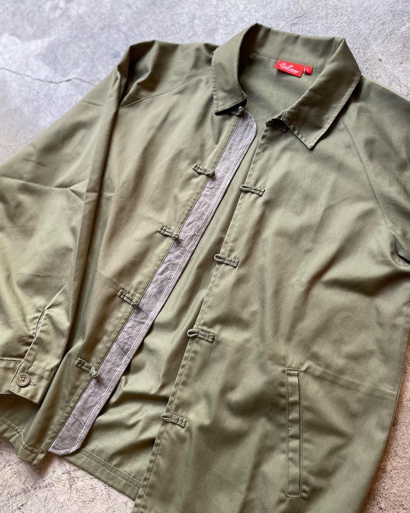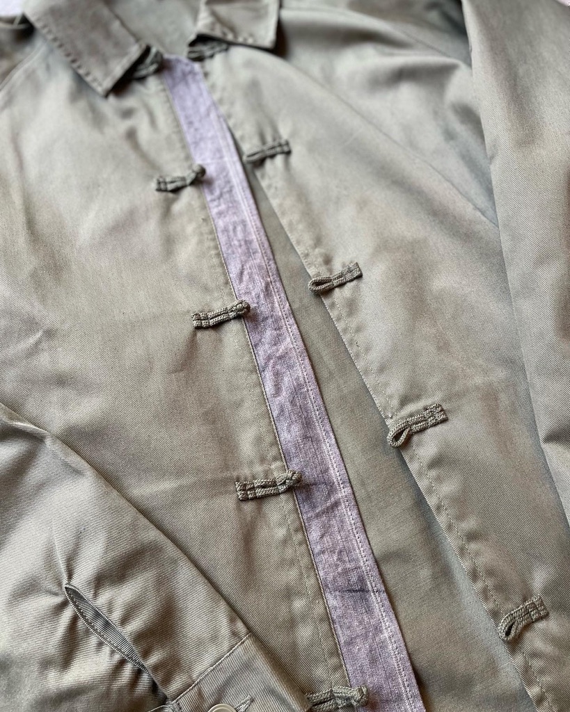 チャイナボタンです。ワークジャケットにチャイナボタン。