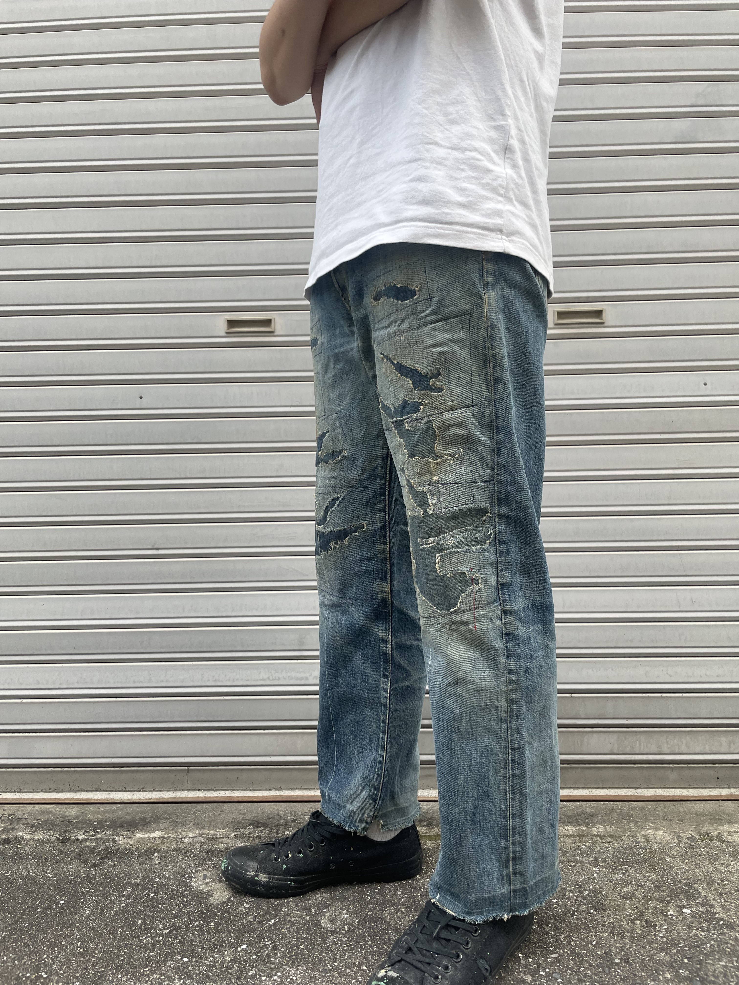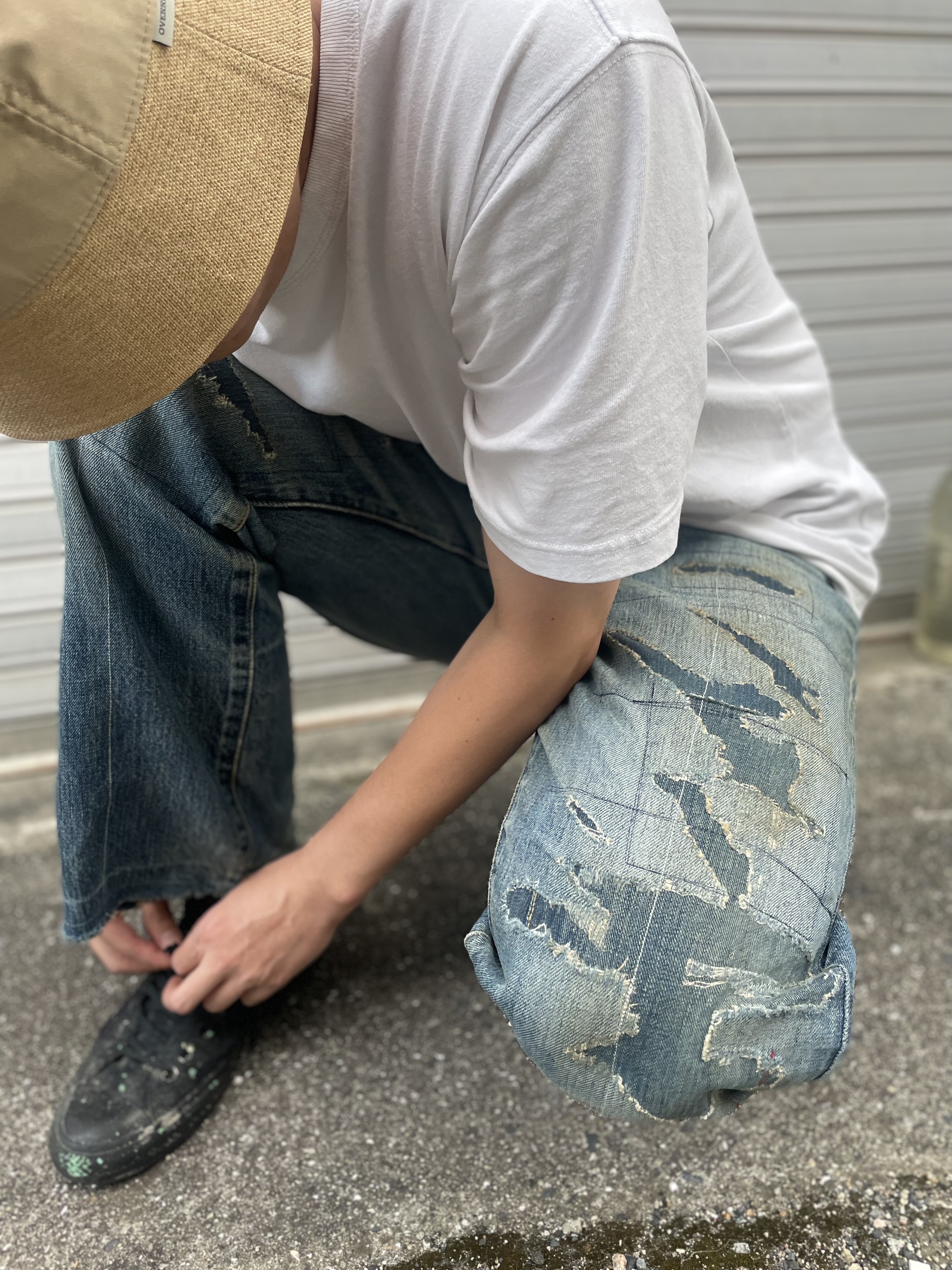 まるで破れては直しを繰り返したような何年も穿き込んでいるような表情です。