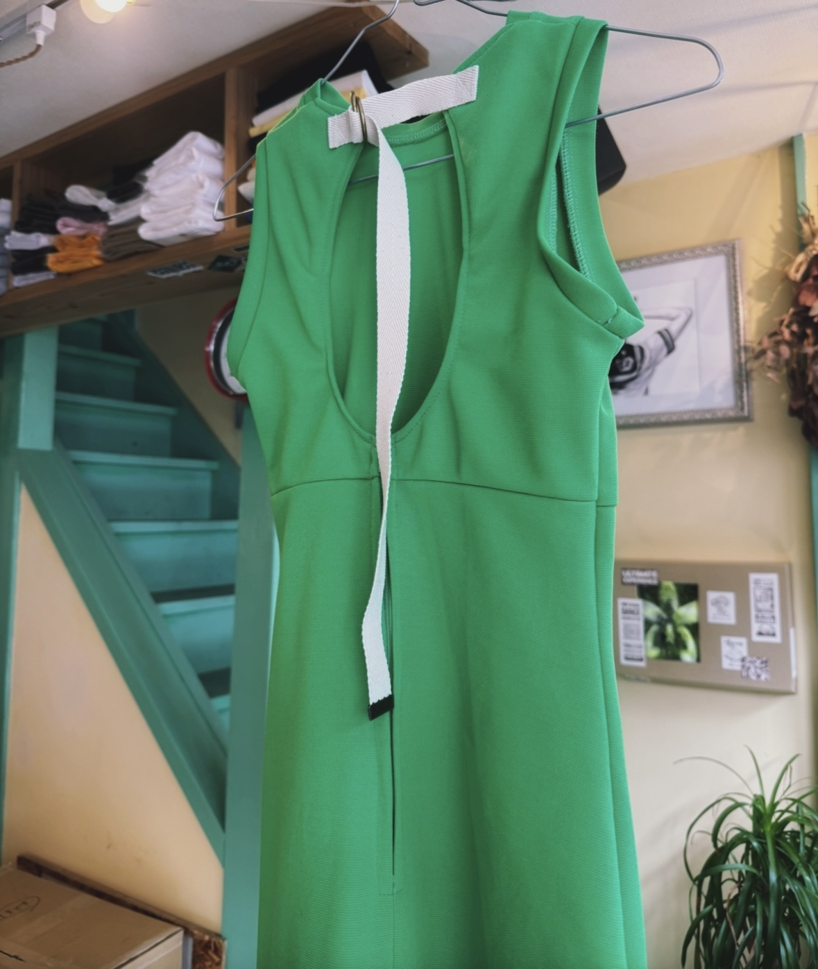 ノースリーブで背中のファスナーを首元まで上げて着るタイプです。